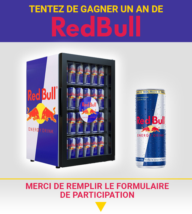 Vous avez été sélectionné pour recevoir en cas de gain Un an de RedBull. Nous vous invitons à confirmer votre participation ci-dessous :